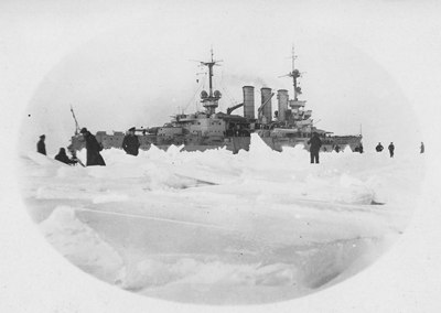 в январе Hessen использовался как ледокол на Балтике, визиты в Либау и Ригу
