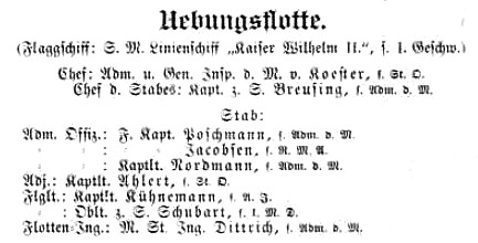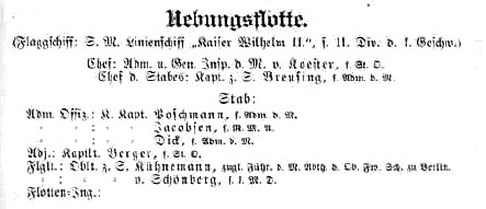 В 1875 году учебную эскадру возглавил "König Wilhelm". В её штаб вошли: командир - директор адмиралтейства контр-адмирал Хенк (Henk), начальник штаба капитан-цур-зее Бланк (Blanc), с 30 июля - корветтен-капитан Дитмар (Wilhelm Ditmar), флаг-офицер лейтенант-цур-зее Штубенраух (Felix Stubenrauch).