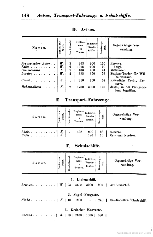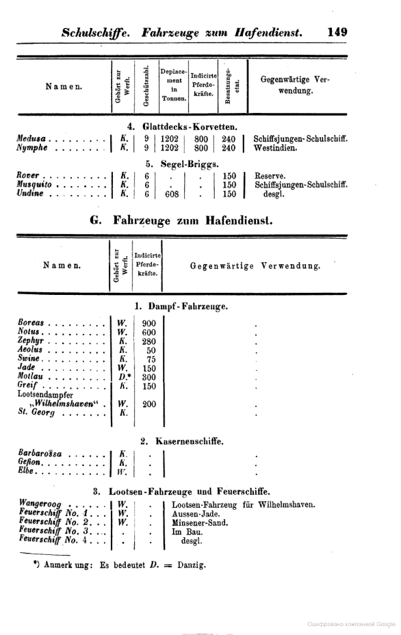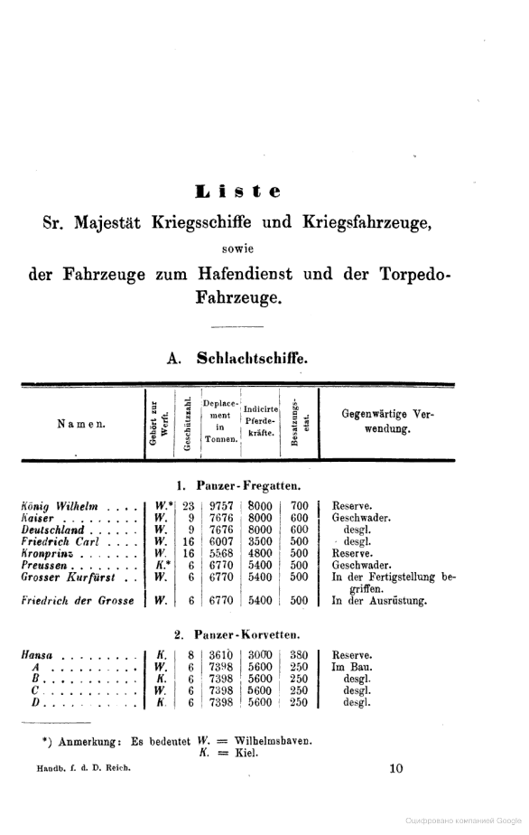 | Rang- und Quartier- sowie Anciennetäts-Liste der Kaiserlichen Marine für 1877-78, Berlin: E.S. Mittler & Sohn |