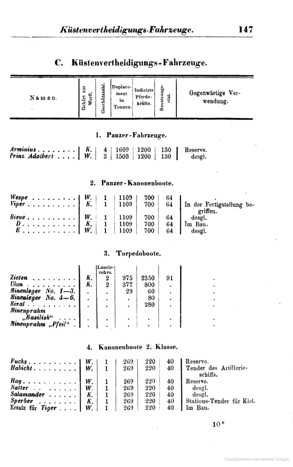 | 22 корабля береговой обороны + 4 в постройке (в т.ч. 5 + 4 железных, 1 композитный)из них 1 использовались, как тендер |
