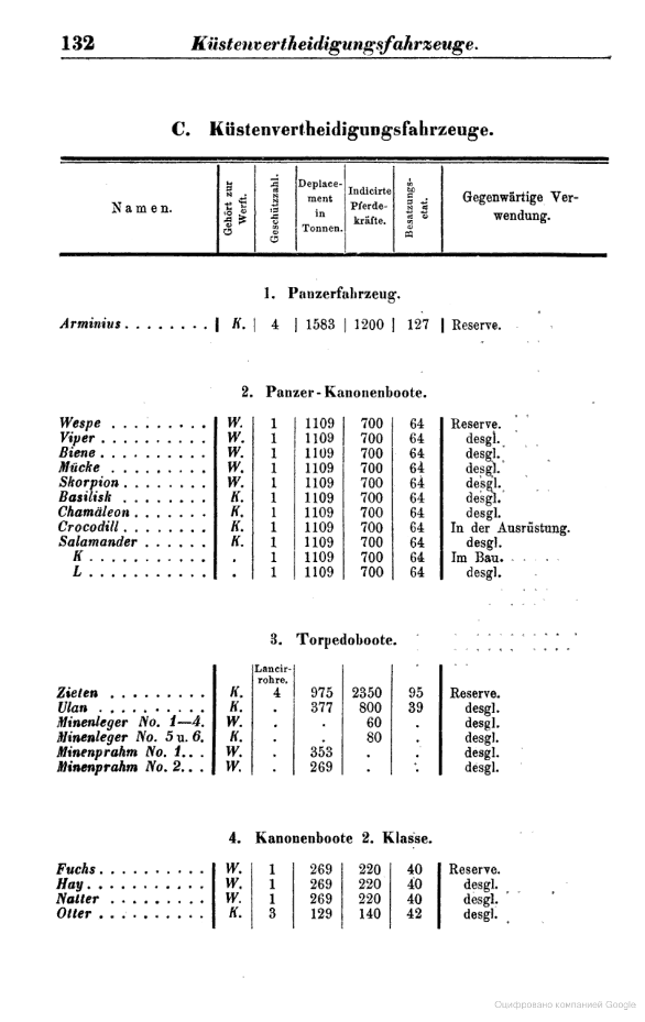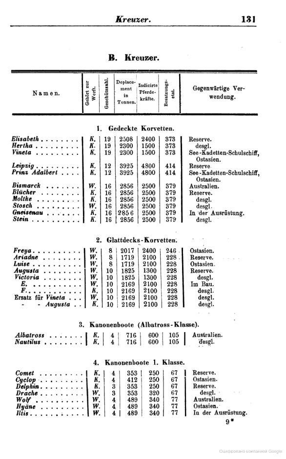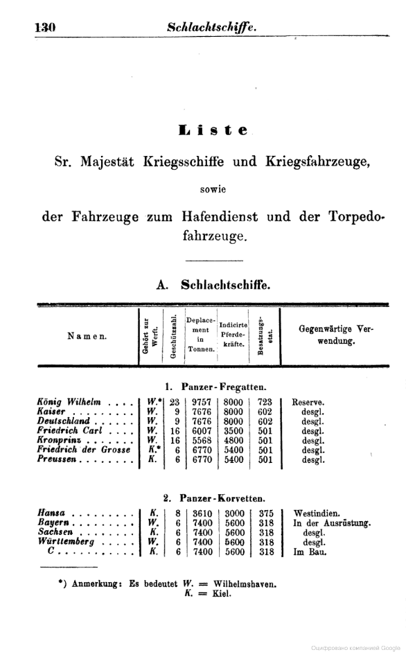 Корабельный состав флота Германии на август 1880 года