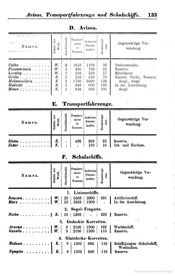 | 2. Rang- und Quartierliste der Kaiserlichen Marine für das Jahr 1881, Berlin: E.S. Mittler & Sohn |