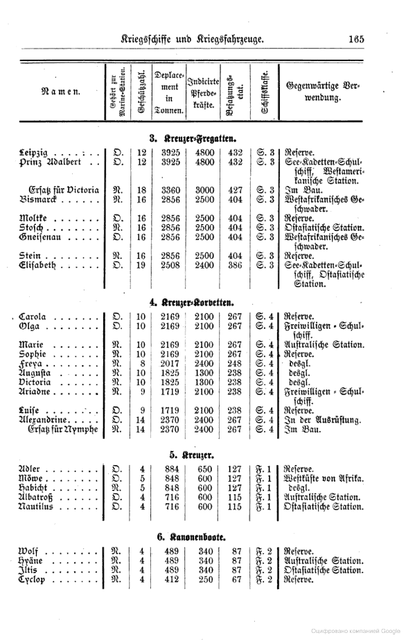 | 2. Nachtrag zur Rang- und Quartier-Liste der Kaiserlich Deutschen Marine für das Jahr 1885, Berlin: E.S. Mittler & Sohn |