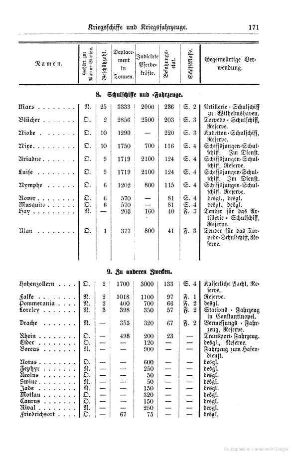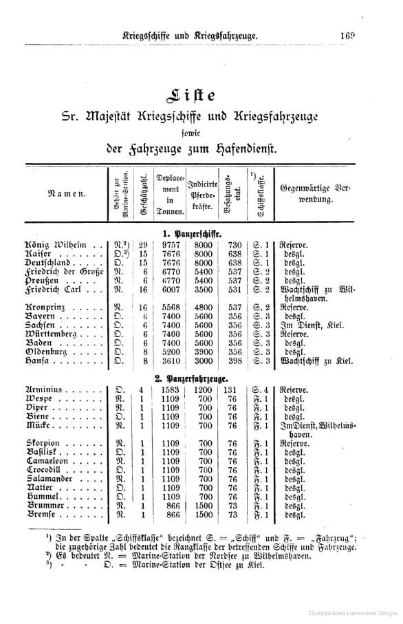 Корабельный состав флота Германии на август 1887 года