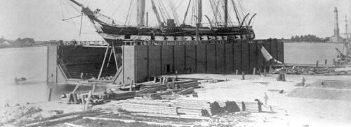 Первый немецкий железный плавучий док был изготовлен по частям заводом компании Borsig в Берлине в 1869 году, собран в Свинемюнде и в июне 1971 года доставлен на недавно созданную Императорскую верфь в Киле броненосцем "Kronprinz" вместе с авизо "Preußischer Adler" и канонеркой "Cyclop".