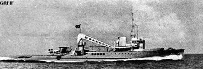 С 19 по 25 сентября 1943 у Травемюнде на палубу "Greif" проводились испытания посадки вертолёта Fl 282, V12, CJ+SF, затем корабль вернулся к спасательной службе