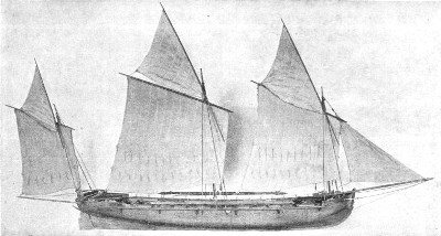 дубовый, с закрытым баком и шканцами и округлой кормой |