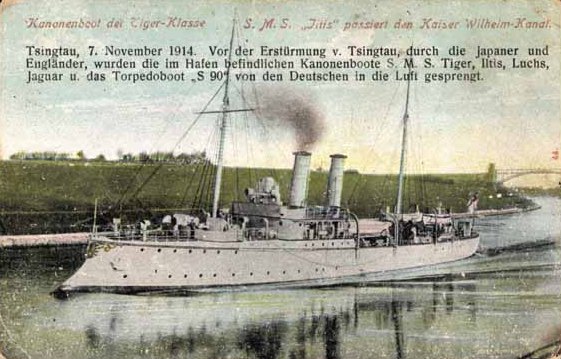 15 июня 1914 г., после примерно шестинедельного пребывания в Шанхае, Iltis вернулся в Циндао, где ему предстояло пройти капитальный ремонт. Начавшиеся на верфи крепости работы не успели окончить к началу Первой мировой войны. Это и сыграло решающую роль в судьбе "героя Таку". Лодку разоружили и разукомплектовали, а 7 августа на ней был спущен флаг. Ее последний командир корветтен-капитан Захсе получил от губернатора капитана-цур-зее Мейер-Вальдека назначение на должность начальника филиала этапной службы в Циндао. Часть команды перешла на вспомогательный крейсер Cormoran, переоборудованный из захваченного легким крейсером Emden русского парохода "Рязань". Остальные моряки с началом осады Циндао японскими войсками оправились на сухопутный фронт. В ночь с 28 на 29 сентября Iltis, однотипная Luchs и малый крейсер Cormoran были выведены на буксире в бухту Кяочао, где под руководством начальника и главного инженера судостроительной верфи X. Хартманна их затопили подрывными зарядами в одной миле на запад-юго-запад от маяка Юнюй (36°03’ N и 12СП6’ O).