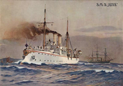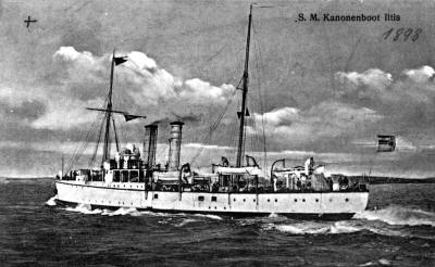 1 декабря 1898 г. на Iltis был поднят военно-морской флаг, и он вошел в состав Кайзерлихе Марине. Сразу после этого начались испытания, окончившиеся в январе следующего года. 6 февраля корабль, которым командовал корветтен-капитан Вильгельм Ланс, навсегда покинул Киль и направился на Дальний Восток для службы на Восточно-Азиатской станции. После посещения Фалмута путь Iltis лежал в Средиземное море. В Бискайском заливе канонерская лодка пришла на помощь британскому пароходу Port Darwin, потерявшему ход из-за поломки винта, и отбуксировала его в испанский порт Ла-Корунья. Далее немецкий корабль пересек Средиземное море и Суэцким каналом вышел в Индийский океан, сделав по пути остановки в Гибралтаре, Порт-Саиде, Адене, Коломбо и Пенанге.