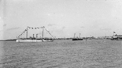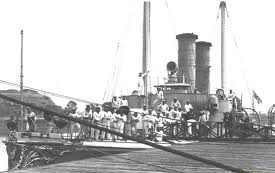Только весной 1910 г. на Eber был поднят военно-морской флаг. Сразу после этого корабль получил назначение на Западно-Африканскую станцию в помощь Panther. 14 апреля лодка под командованием корветтен-капитана Франца Люстига вышла из Вильгельмсхафена и направилась к месту службы. Ровно через три месяца, 14 июля, она бросила якорь в гавани Дуалы. Начавшаяся служба не отличалась какими-либо значительными событиями и состояла из рутинного посещения всех мало-мальски пригодных гаваней западного побережья Черного континента с целью демонстрации флага. Основной трудностью плаванья в тех водах являлись тяжелые климатические условия. В связи с этим, срок службы экипажей канонерских лодок на Западно-Африканской станции был назначен длиной в один год, а не в два, как это практиковалась на остальных кораблях германского флота, находившихся в зарубежных плаваниях. На несколько недель в году стационеры уходили для отдыха и ремонта в Кейптаун или на Канарские о-ва, отличавшиеся более умеренным климатом. Правда, Eber отступил от этого правила уже в первый год своей службы, пойдя для текущего ремонта в Кадис. Работы на корабле продолжались с 7 января по 6 марта 1911 г. По возвращении лодка посетила марокканские порты Могадор (ныне Эс-Сувейра) и Касабланка и в мае вернулась в Дуалу.
