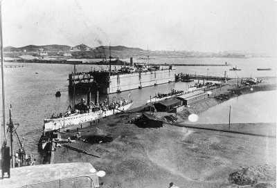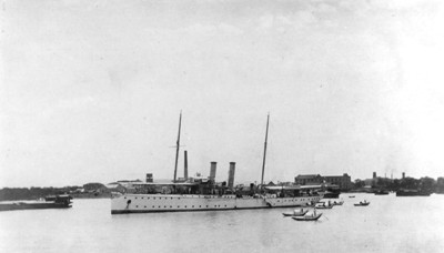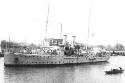 4. Японская канонерская лодка "Atago" защищает железнодорожную станцию Тонгку.