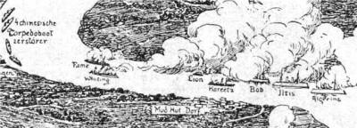 2. Остальные 4 лодки обстреливают после этого Южный и Северный форт, а также пляжную батарею.