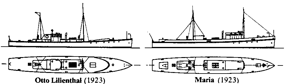 31 Maria UZ 30 получил имя Otto Lilienthal (Карл-Вильгельм Отто Лилиенталь (1848—1896) — немецкий инженер, один из пионеров авиации, объяснивший причины парения птиц). Объём работ был незначительным и вскоре катер вступил в строй в новом качестве. Недостроенный UZ 31, от которого флот уже отказался, верфь предполагала продать в качестве яхты и провела соответствующее переоборудование, установив вместо маленькой рубки салонные надстройки, однако вскоре агенты флота выразили желание приобрести этот катер для авиашколы. В 1923 он вступил в строй с "яхтенной внешностью" и столь-же яхтенным именем Maria и служил при станции гидроавиации в Листе на Зюльте. 31 Maria