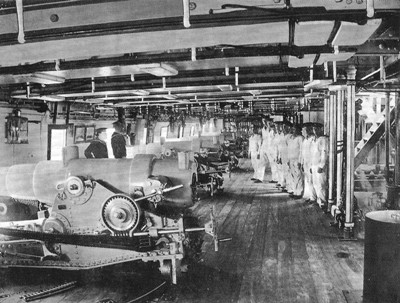 Для улучшения рациона брали и живой скот. Крупный рогатый скот, свиньи или овцы содержались на верхней палубе, домашняя птица между якорными цепями на батарейной палубе.