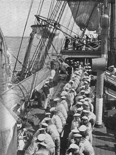 Для Средиземноморского плавания 1901-02 гг., кроме офицеров, число команды распределилось следующим образом: