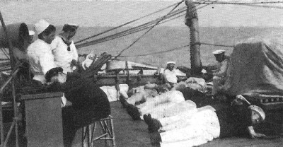 После вывода со службы в 1909 году все орудия за исключением четырех 8,8-см на верхней палубе в корме, были сняты. В корму от труб на верхней палубе соорудили галерею и пекарню. Вскоре с целью увеличения вместимости вся передняя верхняя палуба также была перекрыта холлом. Батарейная палуба стала жилым помещением. Перегородка на уровне грот-мачты отделяла кормовую часть, где теперь располагался госпиталь на 29-39 коек, кроме того, на промежуточной палубе разместились еще 19 спальных мест для легкобольных.