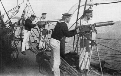 Примерно с 1900 г. для учебных целей имелись также два пулемета «Максим» калибра 0,8 см, установленных на баке по правому борту.