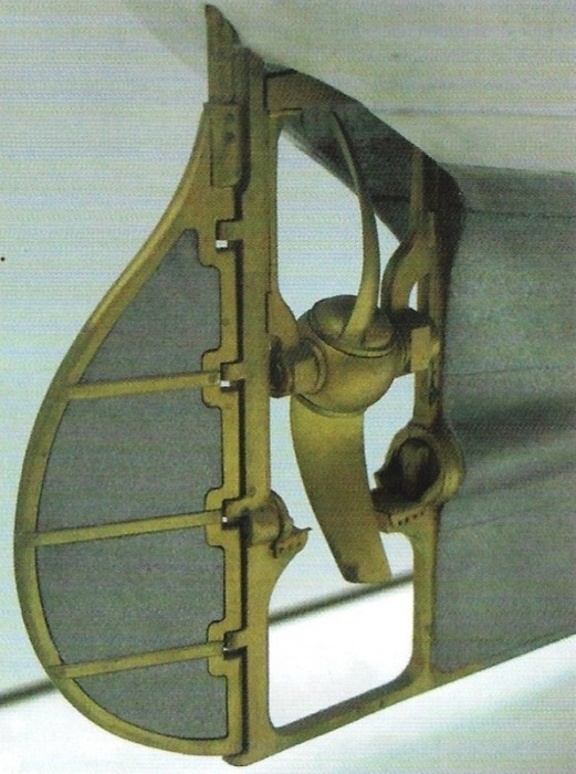 Мощность передавалась от машины к гребному винту сплошным валом. Он имел несколько промежуточгых стоек и выходил в корму через сальник. На заднем конце находился прочный диск сцепления с прямой канавкой. Точно подогнанная ответная часть втулки воздушного винта входила в этот паз и, таким образом, образовывала разъемное соединение в вертикальном положении. Спереди и сзади винта его ступица удерживалась в подшипниках, которые опирались на полки в рудерпосте и ахтерштевне. Подъёмная рама охватывала винт от подшипников ступицы. В верхней продольной балке также имелись шкивы и собачка для фиксации гребного винта в вертикальном положении. Вся конструкция была выполнена из бронзы и была установлена вертикально, обрамленная наклонными направляющими. Наконец, через шкивы в подъемном домкрате и раму был пропущен канат. Подъём был непростой задачей, потому что один человек должен был спускаться с движущегося корабля в бурном море. Силой экипажа рама, весившая вместе с гребным винтом около 10 тонн, поднималась из воды и фиксировалась в верхнем положении. Затем домкрат демонтировали, и винтовой колодец снова закрывался.