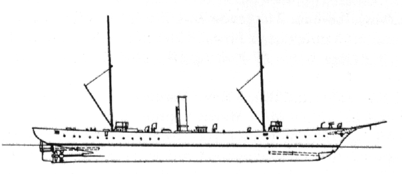 Элегантный яхтенный силуэт этого суперминоносца скрадывал его внушительные размеры. Две паровые машины общей мощностью 2000 л.с. обеспечивали ему прекрасный для того времени ход в 16 узлов. Вооружение состояло из двух подводных 380-мм торпедных аппаратов, установленных в штевнях и способных стрелять строго по диаметральной плоскости корабля в нос и в корму. Предусматривалась возможность перезарядки торпед — их имелось по пять на каждый аппарат. Артиллерии поначалу не было вообще; позже появились шесть 50-мм пушек. Помимо запланированной роли в качестве тендера-лидера для миноносок, он также предназначался для использования в качестве испытательной платформы для новых самоходных торпед.