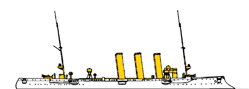 | жёлтый - верхняя палуба, надстройки, одна неширокая полоса чуть ниже верхнего края белой окраски, тонкая полоса (ок. 0,5 м) по ВЛ, носовое и кормовое украшения. (*обе полосы допускались жёлтого, красного или синего цвета) |