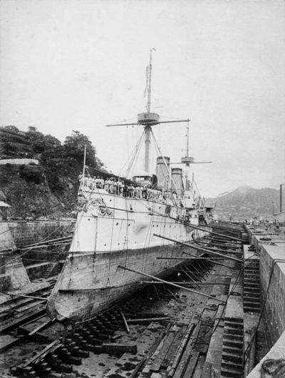 С сентября по ноябрь корабль прошёл капитальный ремонт в Нагасаки. Уже в декабре из-за тяжелой аварии машины он снова должен был идти в Нагасаки, где пробыл до января 1897.