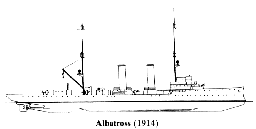 После начала Первой мировой войны в июле 1914 года "Albatross" был классифицирован, как крейсер береговой обороны. В конце августа "Albatross" и "Nautilus" были отправлены на минирование устий британских рек Хамбер и Тайн. Два минных заградителя работали независимо и каждый из них сопровождался легким крейсером и полуфлотилией миноносцев. Группа "Albatross", которая включала крейсер "Stuttgart", вышла из Гельголанда рано утром 25 августа. После прибытия "Albatross" выставил двести мин у устья реки Тайн. На обратном пути немецкие корабли к северу от Доггер-банки потопили три британских рыболовных (патрульных) судна.