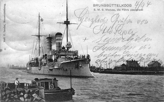 Якорная позиция корабля во время Второй мировой войны находилась в канале Валерер-Тиф или на рейде Шиллиг в Вильгельмсхафене. Батарея оставалась там на протяжении всей войны, но её часто буксировали с места на место, чтобы минимизировать риск того, что она станет объектом конкретной атаки. В период с 13 мая 1940 года по 3 мая 1945 года "Medusa" 789 раз подавала сигнал тревоги о воздушном налете, открывая огонь по крайней мере в 136 из этих случаев. Следует отметить, что союзники, прежде всего британцы, совершили не менее 102 воздушных налетов на Вильгельмсхафен, причем 16 из них были крупномасштабными.