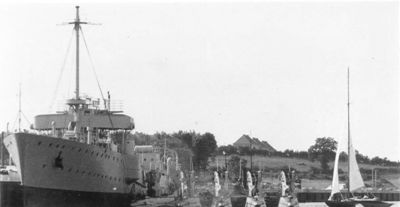 "Arcona" к началу войны мспользовалась, как плавказарма в Киле (см. службу во флоте веймарской республики). В мае 1940 года она была преобразована в плавучую зенитную батарею в Свинемюнде. Ее вооружение теперь состояло из пяти 10,5-см пушек (одной SK C/32 и четырех SK C/33), одной 3,7-см двустволки SK C/30 и четырех 2-см автоматов.