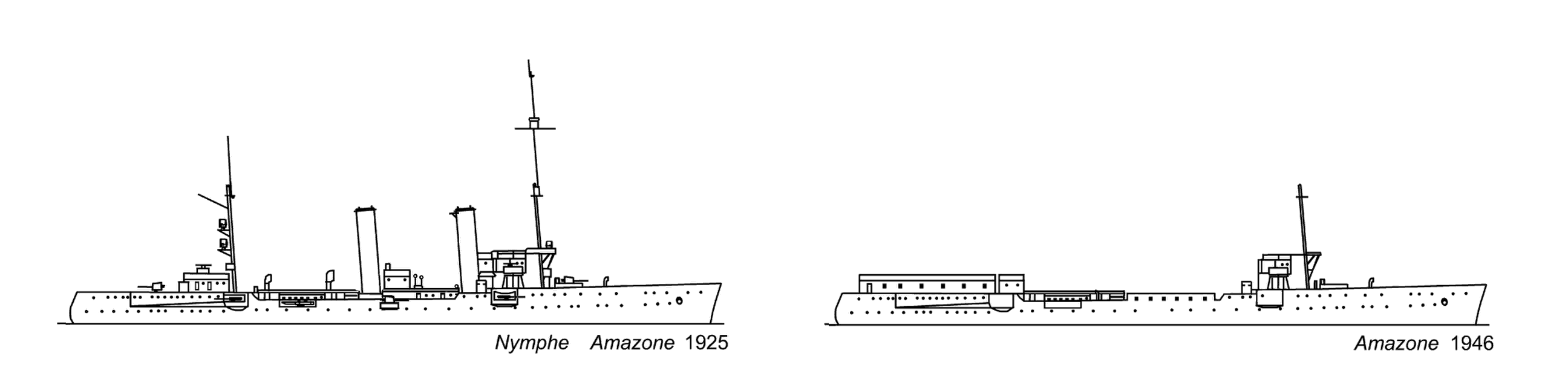 "Nymphe" и "Amazone" были модернизированы (см. ниже)