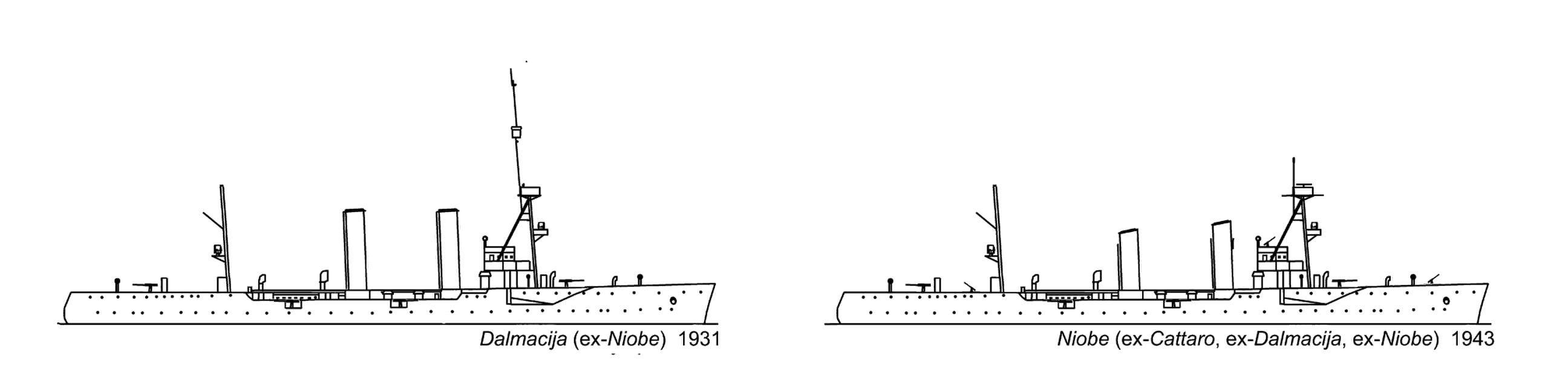 После крушения фашистской Италии 11 сентября 1943 германскими войсками в Поле был захвачен крейсер ПВО "Cattaro", бывший югославский "Далмациjа", бывший немецкий "Niobe" построенный ещё до первой мировой войны. Возникли споры о том, каким должно быть новое имя корабля, при этом рассматривались варианты "Zenta" или "Novara" в честь австро-венгерских крейсеров, но в конечном итоге немцы решили вернуть ему первоначальное имя.