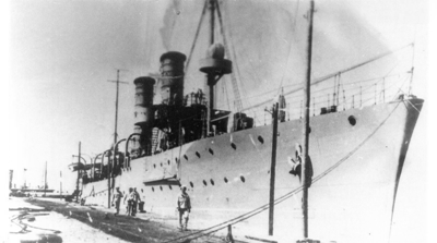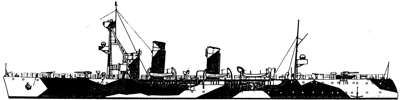 | чёрный - отдельным распоряжением устанавливалась окраска в чёрный цвет верхнего края трубы на 1 м или всей трубы, а также мачт выше уровня трубы или чуть выше салингов, а также, временно, грот-стеньги |