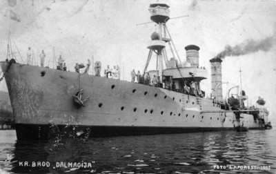 Первоначально на корабле был размещен штаб югославского флота, но когда было решено реализовать довоенный план нападения флота на итальянский анклав Зара в Далмации, 9 апреля штаб был переведен на адмиралтейскую яхту "Бели Орао", чтобы "Далмациjа" могла сконцентрироваться на зенитной поддержке операции. Первоначально операцию должна была проводить 1-я дивизия, но вскоре ее заменили на 2-ю дивизию, которая состояла в основном из моторных торпедных катеров, базировавшихся в Шибенике. От этого плана отказались, когда под ударами Вермахта начался развал Югославии. 10 апреля 1940 г. было провозглашено независимое хорватское государство. На флоте началось деление личного состава по национальному признаку, что ускорило распад югославских вооруженных сил. Некоторые корабли ушли к англичанам в Александрию, а основная часть, в том числе "Далмациjа", попала в руки итальянцев, когда Югославия 17 апреля 1941 капитулировала.