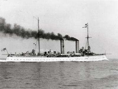 24 января 1915 по приказу командира дивизии береговой обороны крейсер вышел из Орёзунда для патрулирования района между южным входом в Зунд-Треллеборг и Арконой. Погода 25 января была очень хорошая, море спокойное, воздух чистый. Крейсер шёл противолодочным зигзагом на скорости 16 узлов. Около 14:10 в 9 морских к северо-западу от Арконы раздался сильный взрыв в корме, немедленно вода затопила кормовые отсеки, погибли два матроса в рулевом отсеке.