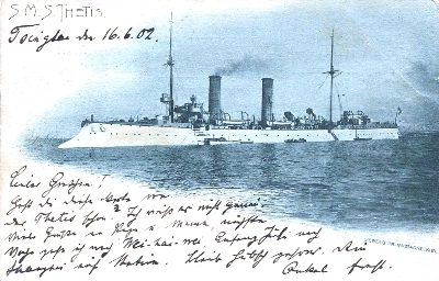 Корабль курсировал по китайским и японским водам в течение следующих двух лет без происшествий. 31 января 1909 сильно изношенный за три года пребывания за границей, крейсер вышел из Циндау в обратный путь в Германию, прибыл в Киль 21 марта и 31 марта 1909 был выведен в резерв в Данциге.