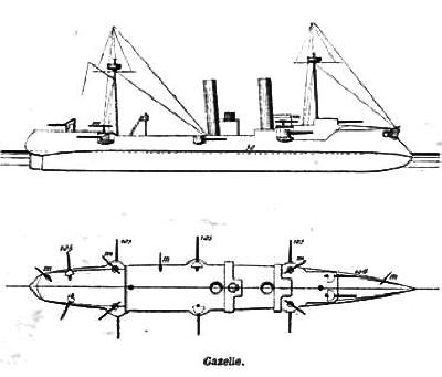 Не последнюю роль в переходе на универсальный тип крейсера сыграл лично кайзер Вильгельм II. Выполненный им на телеграфном бланке в 1894 г. (за год до начала проектирования новых кораблей) эскиз перспективного крейсера уже имел основные черты "Gazelle": таранные штевни, 2 вала и 2 трубы, броневую палубу со скосами и подобные размеры.