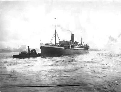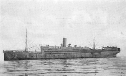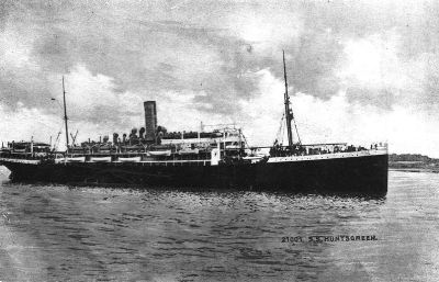 В пути его застала война и 3 августа 1914 года он был захвачен англичанами в Суэцком канале. Под новым именем "Huntsend" корабль использовался, как войсковой транспорт, а также в качестве госпитального судна для эвакуации войск из Галлиполи в 1915 году. 3 января 1917 года недалеко от Крита транспорт был поврежден торпедой немецкой субмарины "UB-47", но остался на плаву, был отбуксирован в порт и позже отремонтирован на верфи Wallsend Slipway & Engineering Company в Тайне. Во время пандемии гриппа "Huntsend " покинул Монреаль 26 сентября 1918 года с 649 канадскими солдатами на борту, врач сообщил о 15 больных гриппом и пневмонией. Несмотря на его обеспокоенность, судно отплыло, и пять процентов из 649 канадцев погибли до того, как смогли высадиться 11 октября 1918 года. Некоторые из зараженных умерли позже.