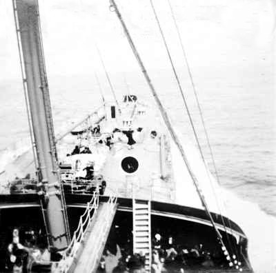 Через пять дней конвой попал в сильный шторм, во время которого на мостик пришло сообщение о том, что за борт упал человек. Остановившись и включив ходовые огни, "Agamemnon" стал разворачиваться назад в надежде поднять пропавшего, но когда он полностью повернул руль влево, тяжелая волна ударила по нему и заклинила в положении 43 градуса. Некоторое время корабль управлялся только винтами, а когда была подключена резервная рулевая машина, возобновил свое путешествие. При проверке на следующее утро выяснилось, что все люди были на месте, сообщение оказалось ложным. После недолгого пребывания в Сен-Назере перед прибытием в Брест 24 января, "Agamemnon" вернулся в Хобокен 11 февраля 1918 года.