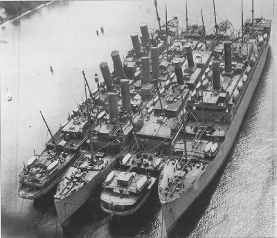Другой проблемой была особенность эксплуатации рейсовых лайнеров - в каждый момент времени обычно половина из них находилась в море с многочисленными пассажирами на борту, причём в зоне, контролируемой британским флотом. В случае четырёхтрубников это означало, что два из них не имели возможности высадить пассажиров и погрузить запас угля и в результате были интернированы в США.