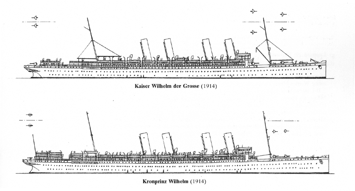 В Германии перед первой мировой войной имелось пять четырёхтрубных скоростных лайнеров (так называемых экспресс-пароходов). Все они строились с государственными субсидиями и были изначально оборудованы для возможного использования в качестве вспомогательных крейсеров - рейдеров. Капитаны этих лайнеров имели на этот случай соответствующие инструкции. Все пять лайнеров были построены на штеттинской верфи Vulcan и, не смотря на несколько различные размеры, мощность и тип машин, а так-же на разное количество палуб надстройки, фактически относились к одному типу.