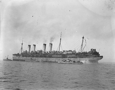 4 сентября 1918 года "Mount Vernon" отправился в очередной обратный рейс из Бреста в Нью-Йорк со 150 ранеными солдатами на борту. Во время ремонта венского кафе больница была перенесена на солнечную террасу. Утром 5 сентября 1918 года транспорт в конвое был уже в 200 морских милях от побережья Франции, когда расчёт пушки № 1 обнаружил справа по носу на расстоянии около 500 метров перископ подводной лодки и немедленно обстрелял его. Это была немецкая подлодка U-82. Несмотря на предпринятый маневр уклонения, торпеда попала в среднюю часть корабля и нанесла серьезные повреждения. В результате взрыва погибли 36 моряков, 13 получили ранения. Вода затопила весь средний отсек, некоторые котлы вышли из строя. Только вовремя закрытые двери в переборках препятствовали затоплению корабля. Пароход с креном 15 градусов и скоростью, уменьшенной до шести узлов, пошёл обратно в Брест, где был поставлен в док. Окончательный ремонт был проведен в Бостоне.