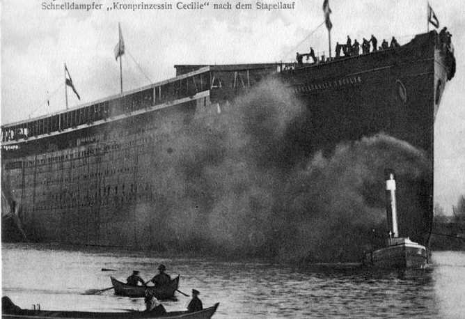 "Kronprinzessin Cecilie", построенный в Штеттине в 1906 г., был последним в серии из четырех лайнеров для Северогерманского Ллойда, и последним немецким лайнером, на котором было четыре дымовых трубы. При тех-же размерах, что предыдущий "Kaiser Wilhelm II", он имел ещё более мощные машины - самые большие поршневые паровые двигатели, когда-либо установленные на корабле. Установка развивала мощность 46 000 л.с. и также, как на предшественнике, состояла из четырёх машин 4-кратного расширения, работавших на два четырехлопастных винта, которые могли разгонять пароход до скорости 23,6 узлов.