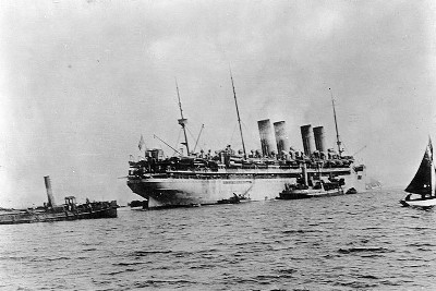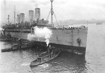 28 июля 1914 г. корабль получил известие о начале войны, когда направлялся из Америки в Германию с предварительным заходом в Британский Саутгемптон. В дополнение к 1216 пассажирам, включая некоторых британских резервистов, он нёс 10 679 000 долларов золотом и 3 000 000 долларов серебром. Золото предназначалось для парижских и британских банков. Корабль приближался к Ливерпулю, когда ему было приказано вернуться в Соединенные Штаты, чтобы избежать захвата Британией.