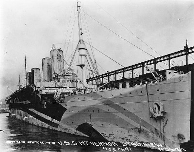 "Mount Vernon" вернулся в транспортную службу в феврале 1919 года и отплыл во Францию 22 февраля, в день рождения Джорджа Вашингтона, в свой первый рейс по возвращению американских солдат с европейской арены на родину, и 3 марта в 11 часов вечера вышел в обратный рейс.