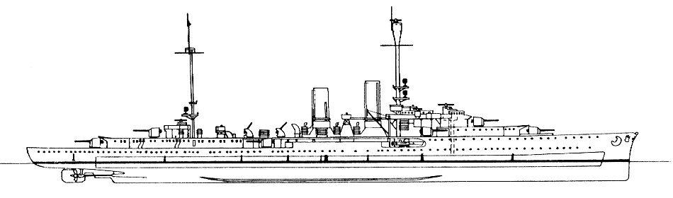 С защитой конструкторы решили не мудрить и полностью сохранили прошедшую хорошую проверку в деле схему своих крейсеров 1-й мировой войны: броневой пояс плюс палуба со скосами, имевшая двойную толщину (40 мм) в районе погребов боезапаса. В целом получился пусть и построенный в основном по старому проекту, но вполне конкурентоспособный корабль. Главное - вполне по средствам.