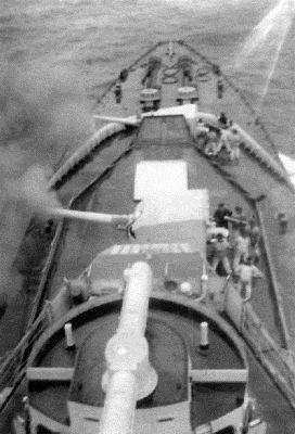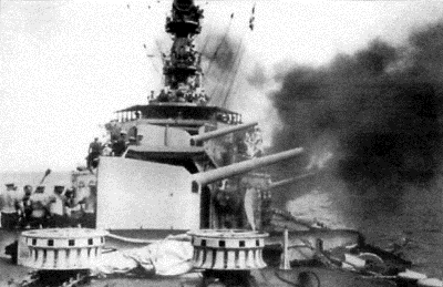 Между 12-м и 96-м шпангоутами примерно на уровне верхней кромки пояса проходила броневая палуба. Почти везде она набиралась из 20-мм плит и лишь нал погребами из 40-мм. Ее скосы толщиной 20—40 мм и длиной около 3 м опускались под углом 40°, примыкая к нижней кромке пояса. В носу от 96 до 106 um. защитная палуба опускалась на уровень ниже и становилась плоской. В корме (6—12 шп.) "коробчатое" 20-мм бронирование прикрывало рулевой привод.