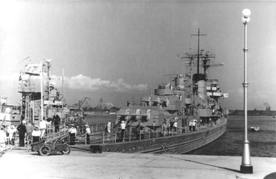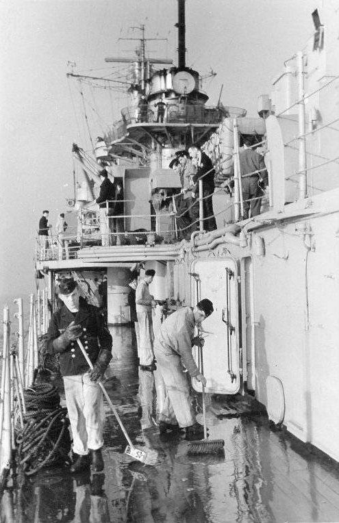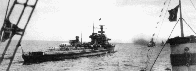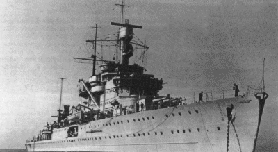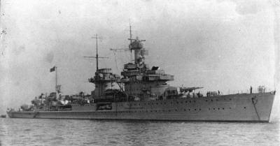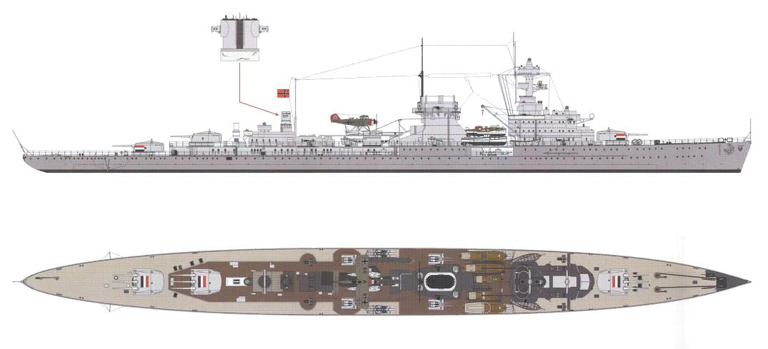 Это крейсер вошёл в строй уже в Кригсмарине, но новый флаг ещё не был готов, и несколько дней корабль ходил под флагом Рейхсмарине. Гидросамолет также сперва еще имел трехцветную полосу на хвостовом оперении.
