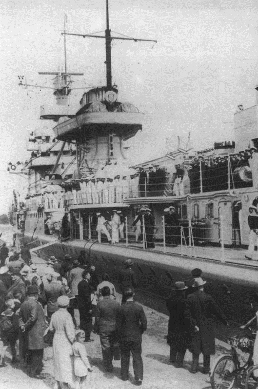 2 ноября 1935 года корабль вошел в состав флота, на нем сначала подняли флаг уже несуществующей Веймарской республики, но уже через пять дней, 7 ноября, на нем подняли военно-морской флаг Третьего Рейха.