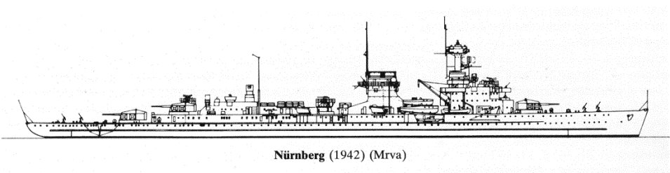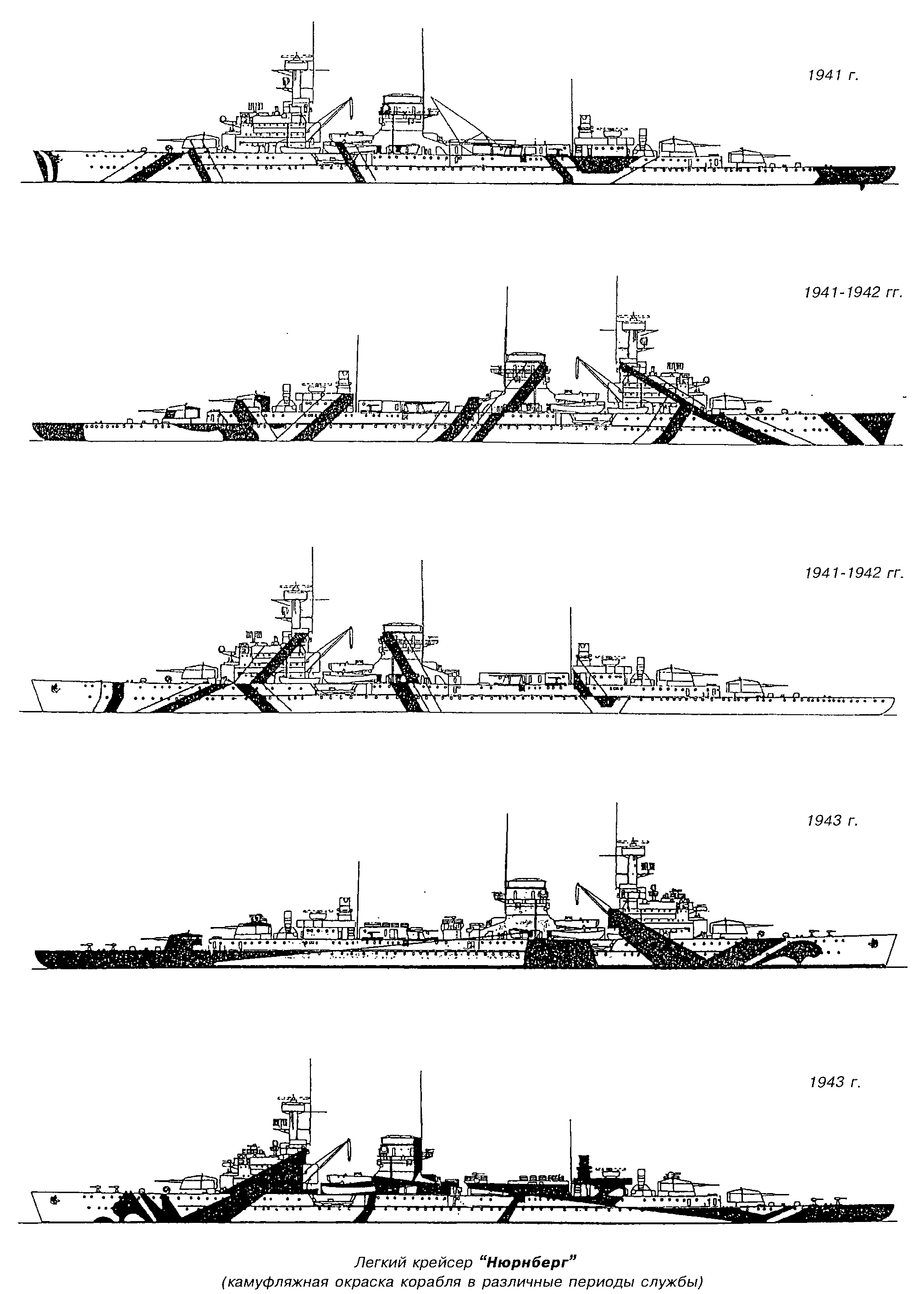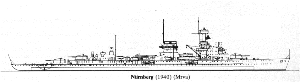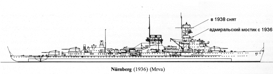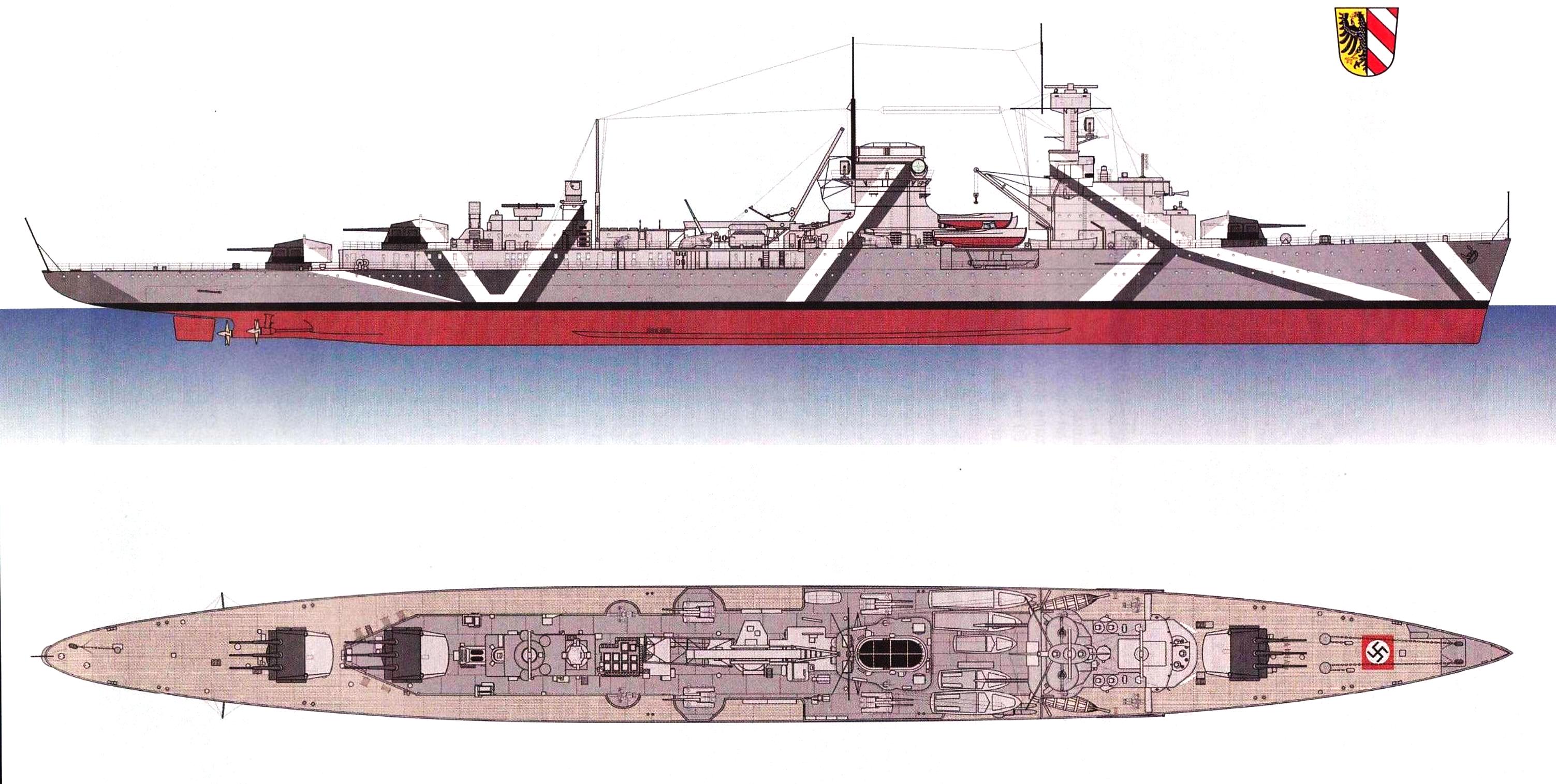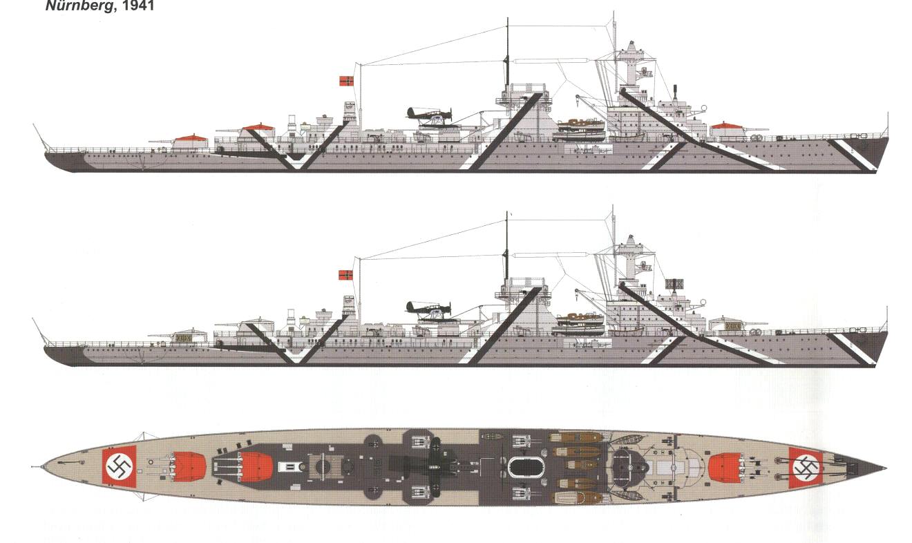 "Nürnberg" опознавался по расположению башен и отсутствию «белых кругов» или темных поверхностей на их крышах. Они оставались таковыми до начала 1940 года.