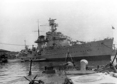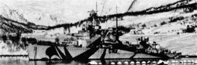 Во время пребывания на Балтике в 1941 корабль нёс т. н. "балтийский" камуфляж с белыми и чёрными косыми полосами. Горизонтальные поверхности оставались без изменений.