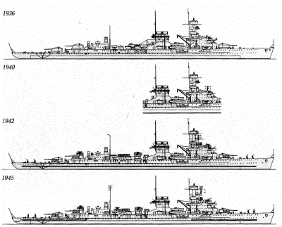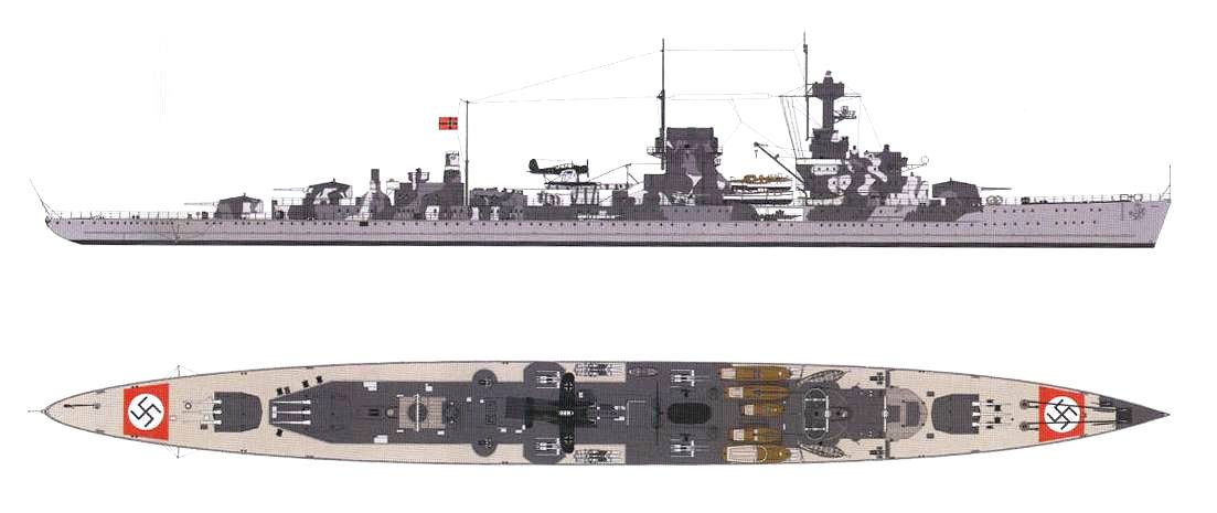 В 1941 крейсер носил стандартный "балтийский" камуфляж с красными крышами башен, за исключением крыши перископа креплений, которая осталась светло-серой. Другие фотографии показывают светло-серые крыши башен, вероятно, их окраска регулярно менялась, в зависимости от того, был ли корабль в порту, в походе в дружественных водах или лишен прикрытия Люфтваффе.